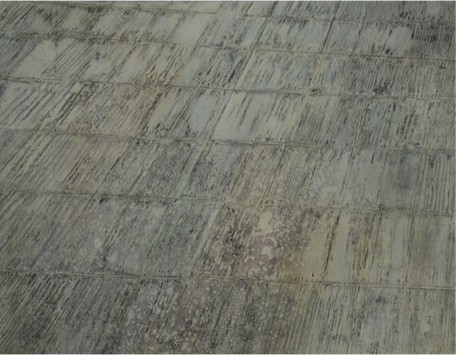 - Latex, industrial paint, and ink on canvas
